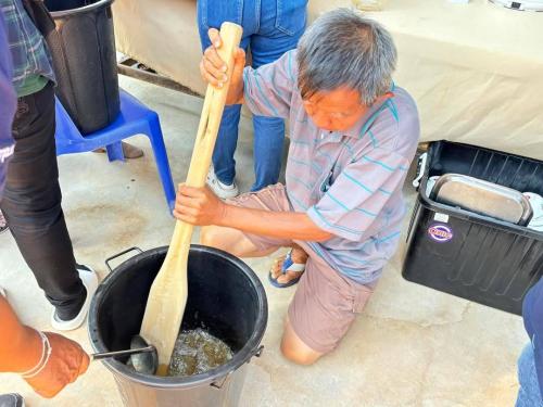 วันที่ 11 มีนาคม 2568 นายศุภฤกษ์ แสนแก้ว พัฒนาการอำเภอเลาขวัญ พร้อมด้วยเจ้าหน้าที่พัฒนาชุมชน ดำเนินโครงการสนับสนุนให้ความช่วยเหลือครัวเรือนยากจนแบบบูรณาการ นายพิสิฐ มาศวิจิตร ผู้นำอช. ตำบลทุ่งกระบ่ำ และกรรมการเครือข่ายขับเคลื่อนศูนย์เรียนรู้การพัฒนาคุณภาพชีวิตตามหลักทฤษฎีใหม่ ประยุกต์สู่ "โคก หนอง นา" จังหวัดกาญจนบุรี พร้อมคณะผู้นำอช.ทุกตำบล ร่วมให้ความรู้และแลกเปลี่ยนความคิดเห็น เกี่ยวกับการปลูกพืชในพื้นที่แห้งแล้ง ให้ทุกครัวเรือนมีพืชผักสวนครัว เพื่อลดรายจ่ายและยังได้รับเกียรติจากวิสาหกิจชุมชนโคกหนองนาสวนไผ่ไฮเทคเพื่อพัฒนาสัมมาชีพ สอนการทำแชมพูปิดผมขาว สบู่เจล จากสมุนไพรรอบรั้วบ้านให้กับครัวเรือนตกเกณฑ์ TPMAP ด้านอาชีพและรายได้ และครัวเรือนตกเกณฑ์ จปฐ. ข้อรายได้ ปี 2567 ประเภทพัฒนาได้ รวมจำนวน 25 คน และมีประธานสตรีจากทุกตำบลเข้าร่วมให้การดำเนินกิจกรรมเป็นได้อย่างราบรื่น